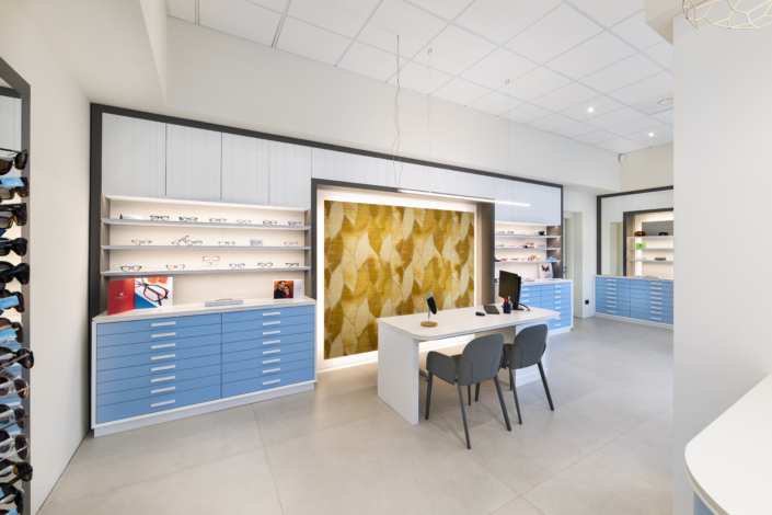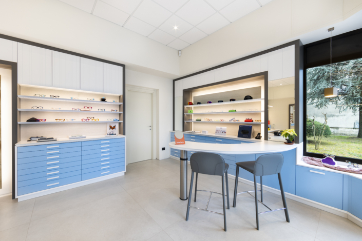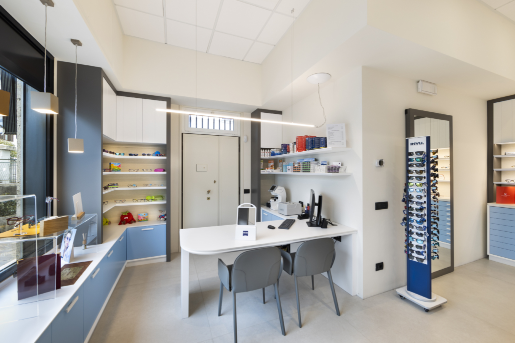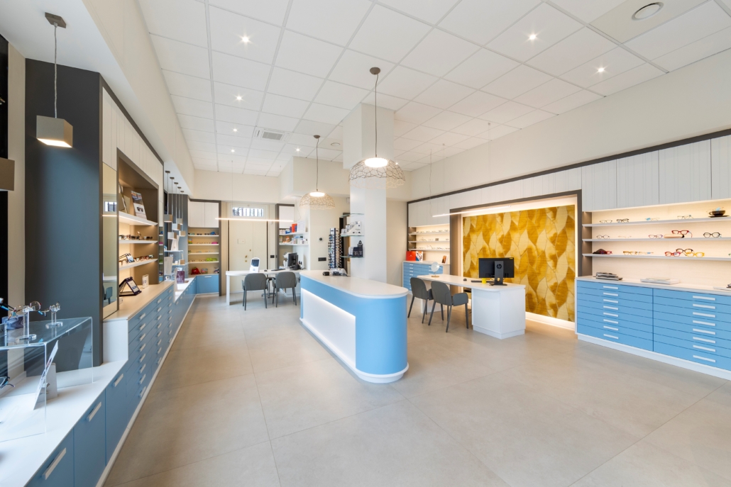 Tutto sembra molto più ampio e spazioso. Abbiamo aumentato le postazioni di vendita, con due scrivanie per la scelta degli occhiali comodamente seduti e due banconi rialzati per la consegna e il confronto con voi clienti: ognuno saprà trovare il proprio spazio.
