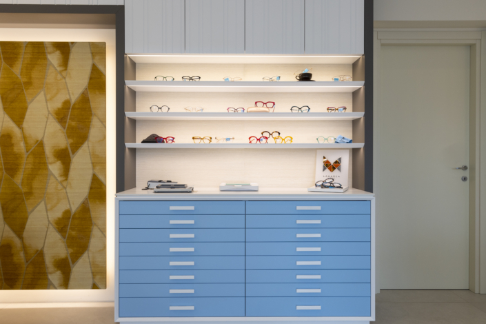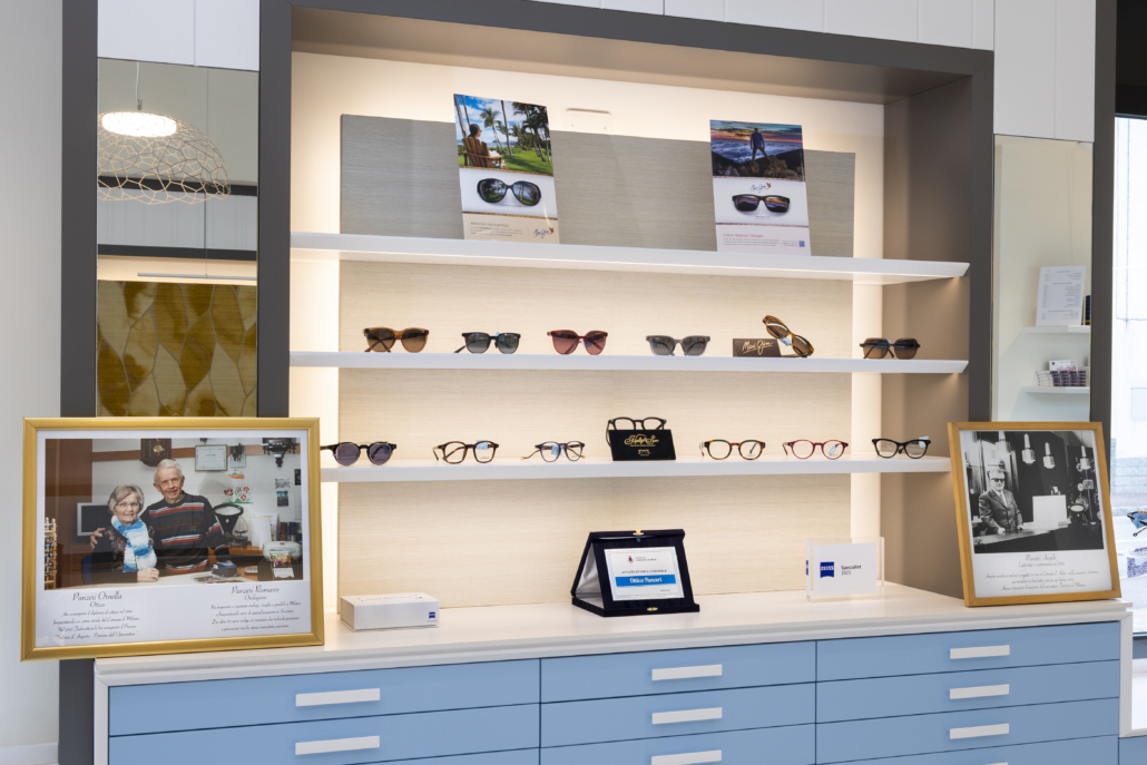 La vera protagonista è la luce che avvolge e riscalda, in modo molto più evidente rispetto a prima. Le vetrine aperte rendono arioso il locale e lasciano filtrare la luce naturale del sole, mentre sulle mensole alcuni led incassati appositamente studiati mettono ben in evidenza le montature in esposizione.